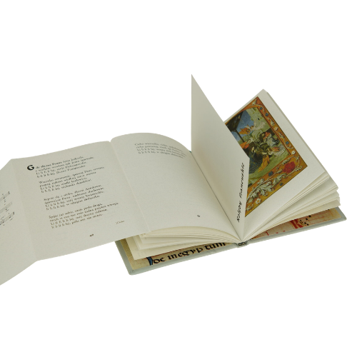 The visual language drew on miniatures from medieval graduals. Most copies were bound in specially prepared white and cream silks, while selected copies were executed in leather, silver, and ornamental stones. The result is a collector’s book of modest dimensions but remarkable thought, restraint, and technical finesse.